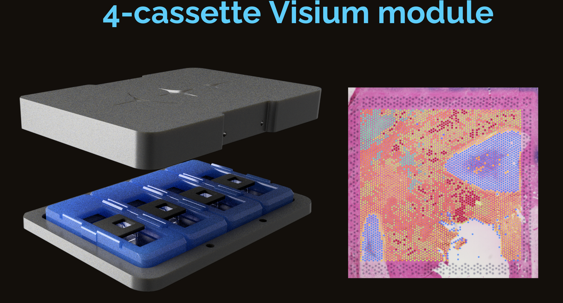 Visium is a popula spatial transcriptomics platform from 10 Genomics. It offers great capabilities in terms of comprehensive coverage of transcriptome with near-single cell resolution (Visium HD). However, the sample prep is tedious and the throughput is limited by the format of 10x's standard 2-cassette adapter.